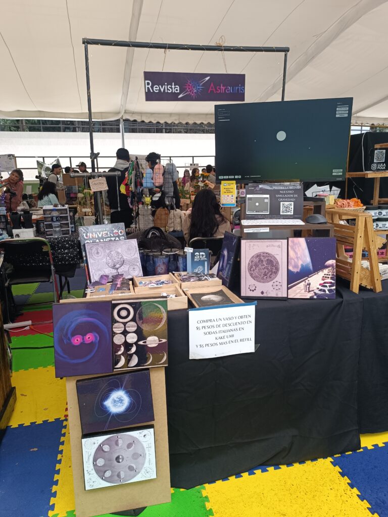 Este fue nuestro primer bazar y nuestro primer evento público como revista para divulgar el contenido y los artículos que aquí escribimos con tanto esfuerzo y dedicación para esparcir el conocimiento. También promocionamos y explicamos nuestro videojuego, el Simulador de Gravedad Online, una iniciativa que busca enseñar sobre diversos fenómenos de nuestro universo, como la formación planetaria y satelital, el comportamiento orbital, la dinámica de colisiones, etc etc.